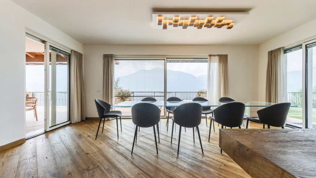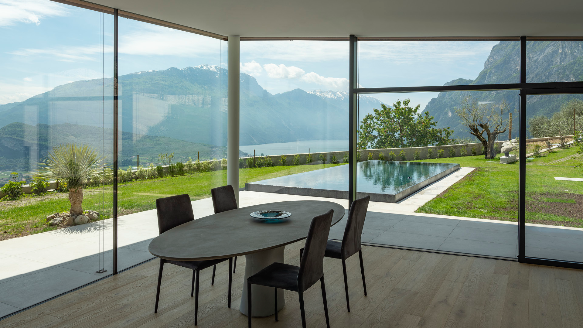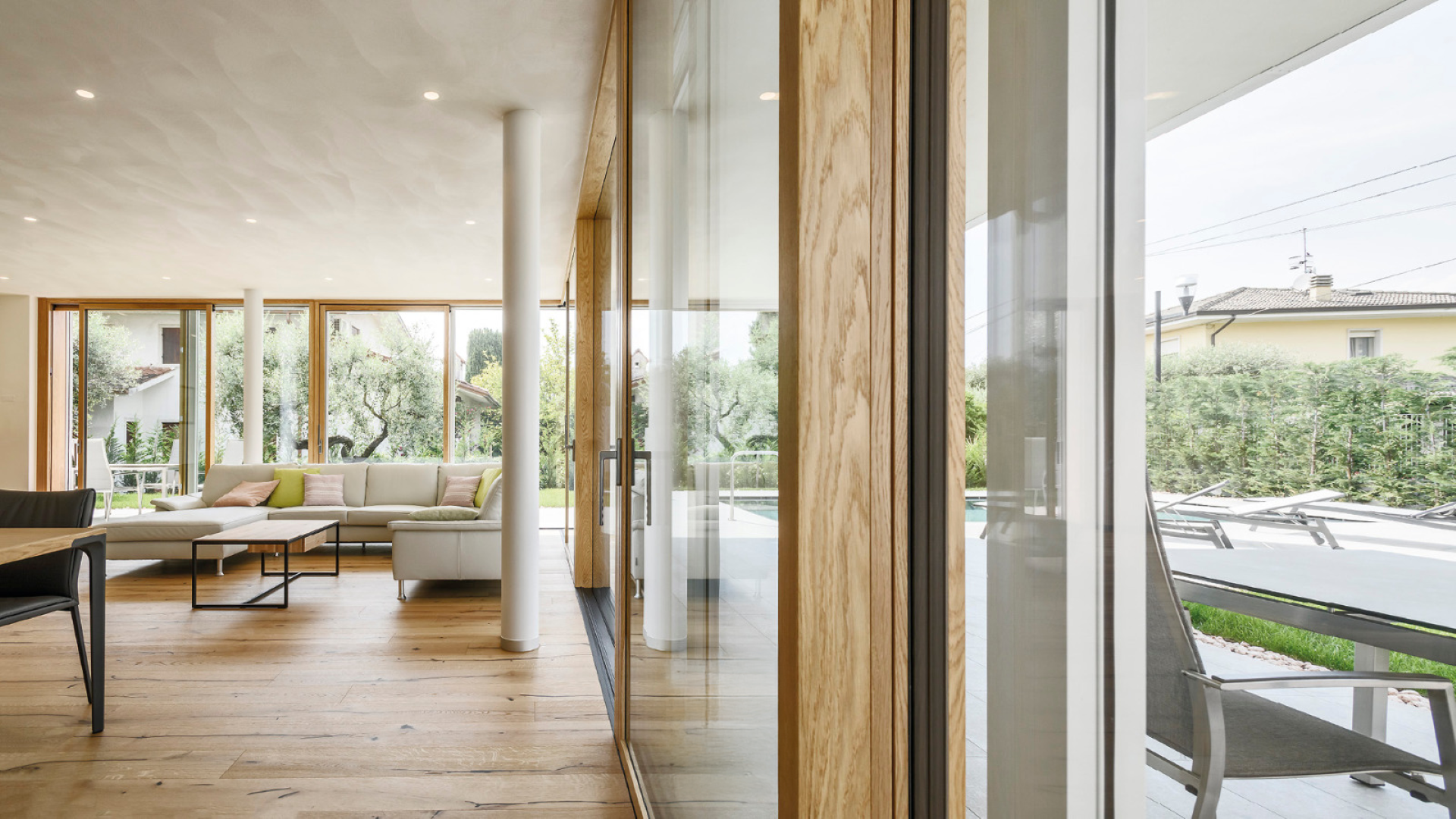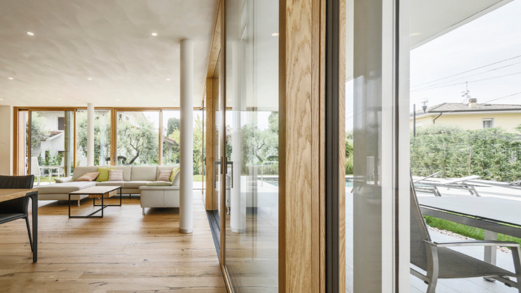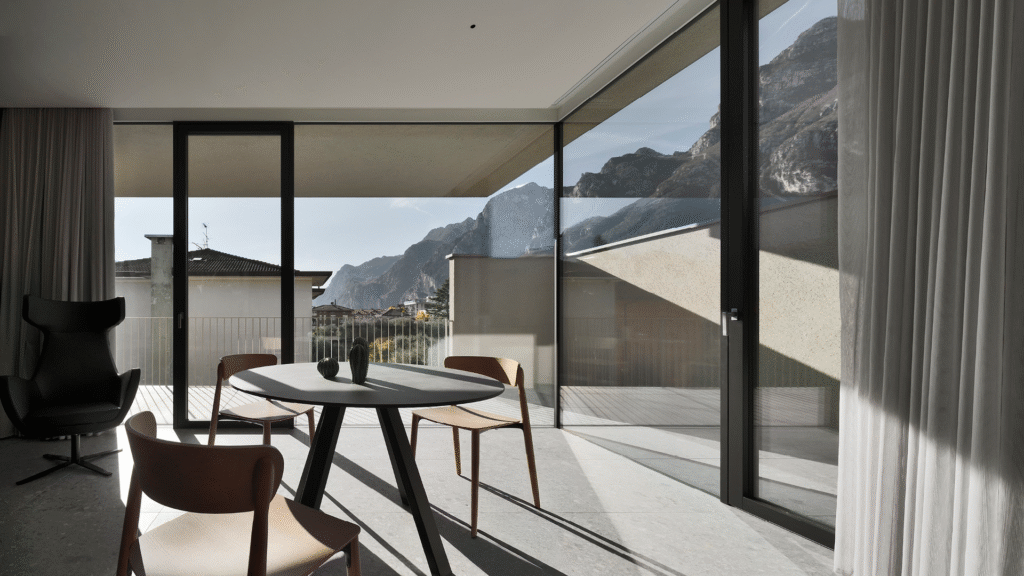 Ogni vetrata diventa così un elemento architettonico evoluto: amplia lo spazio, valorizza la luce naturale e apre lo sguardo sul paesaggio.