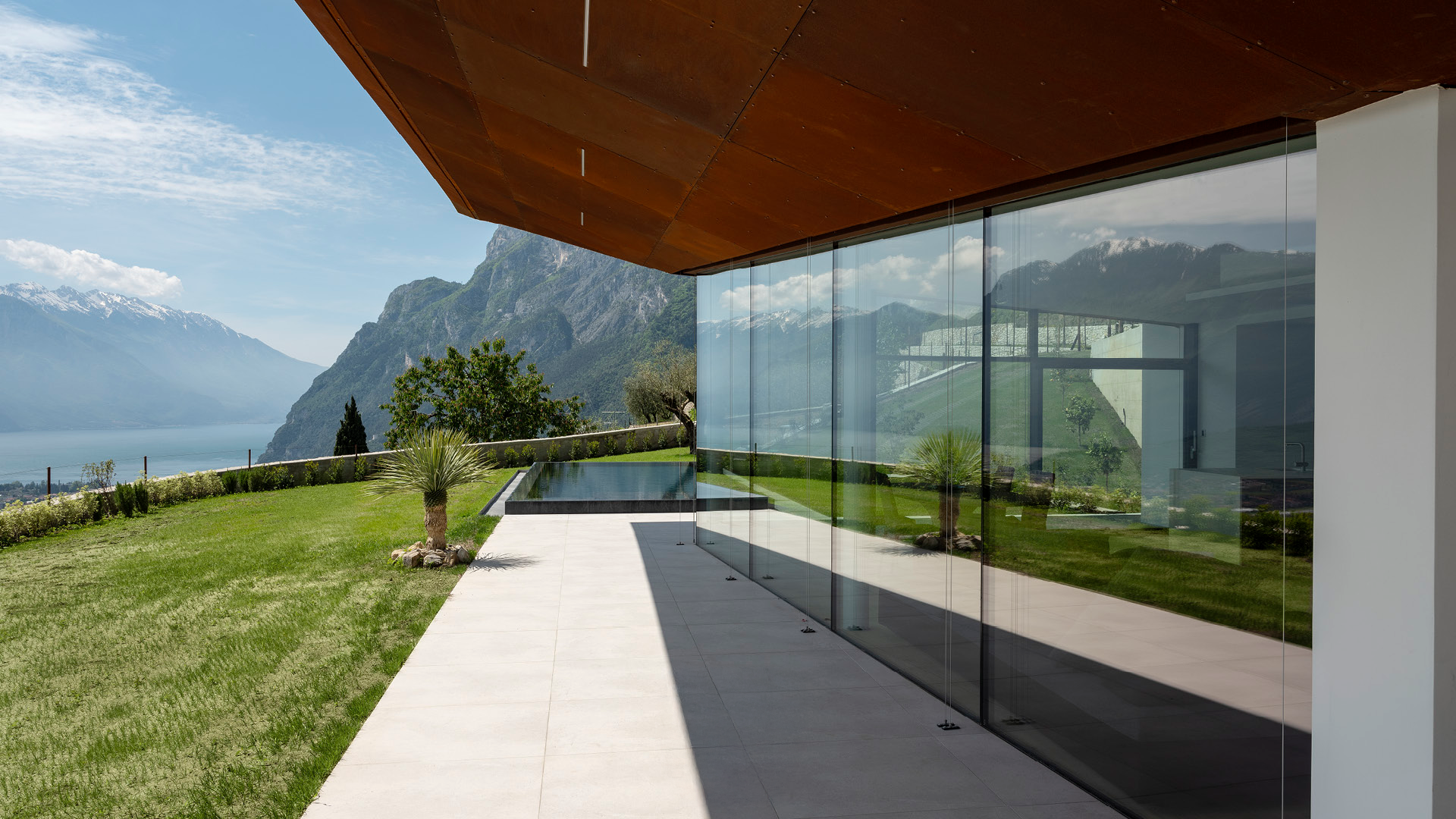 Le vetrate panoramiche esprimono l’architettura contemporanea come dialogo diretto tra l’abitare e il paesaggio. Profili ridotti al minimo e vetri stratificati di sicurezza permettono di realizzare ampie superfici trasparenti, che uniscono continuità visiva e alte prestazioni tecniche.