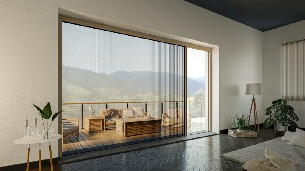Le diverse configurazioni di apertura, scorrevoli, a libro o impacchettabili, offrono soluzioni versatili, anche con sistemi motorizzati integrabili nella domotica. Finiture e tonalità dei profili si coordinano con il contesto architettonico, assicurando un inserimento armonioso e discreto.